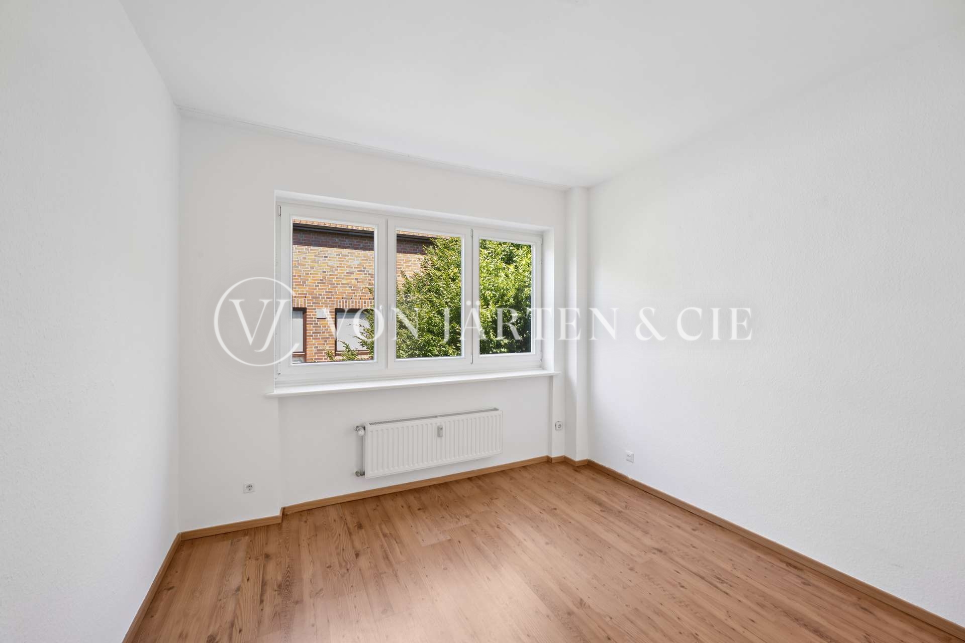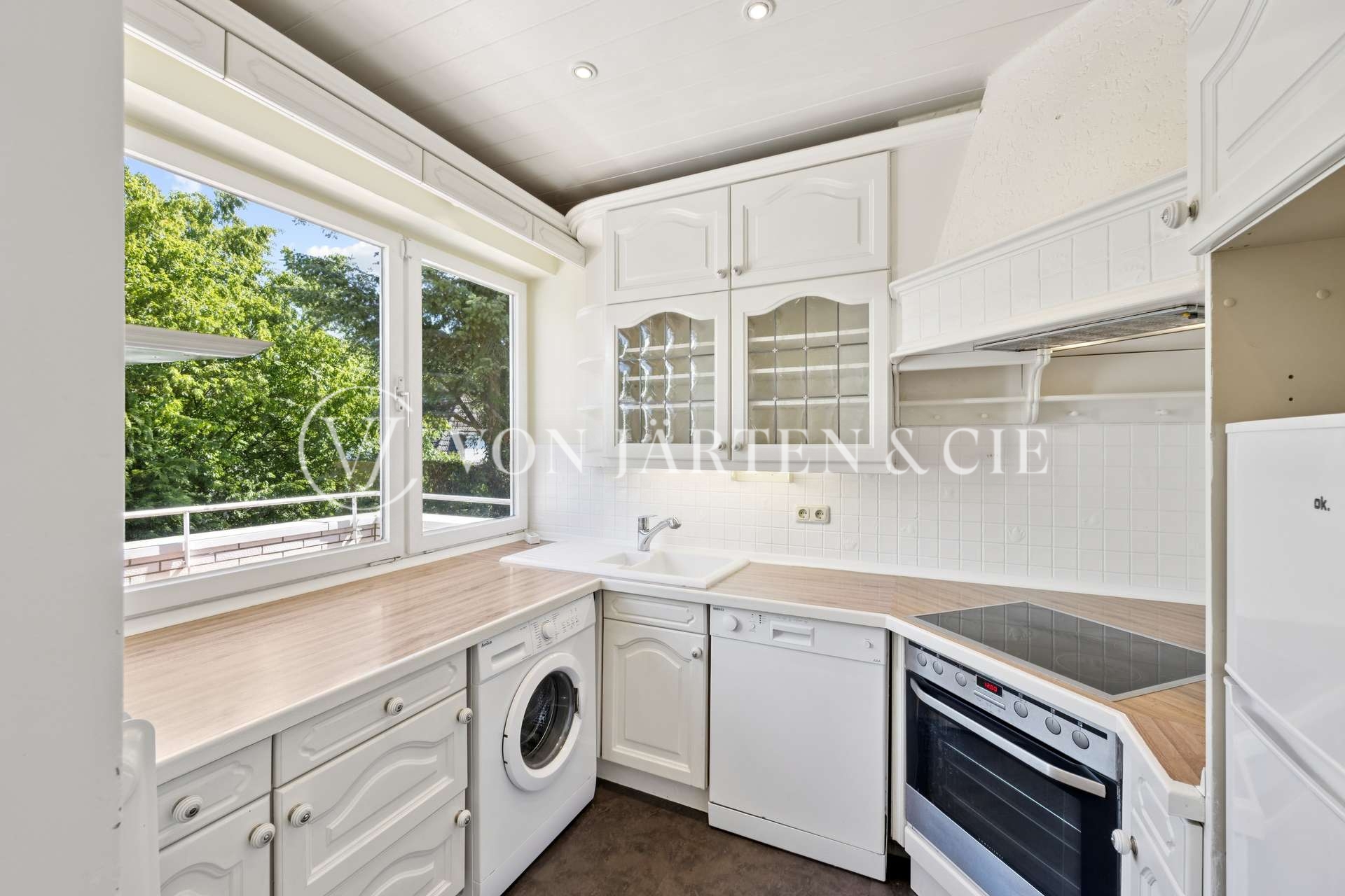 Die Wohnung verfügt insgesamt über drei Zimmer und besticht durch ihre außergewöhnlich helle Atmosphäre. Große Fensterfronten sowie mehrere Oberlichter sorgen den ganzen Tag über für viel natürliches Licht und ein offenes, warmes Wohngefühl.