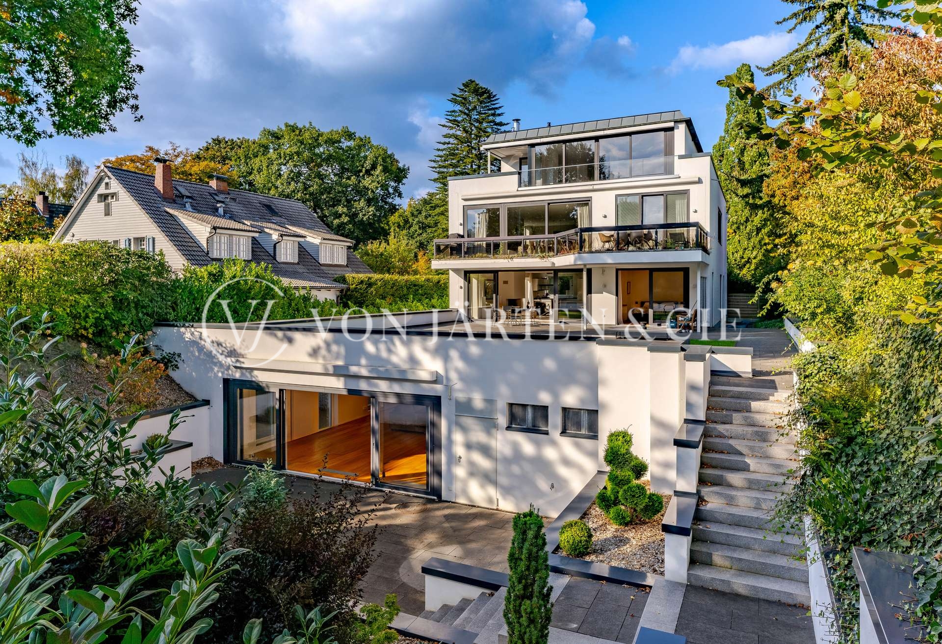 Die Wohnung bietet derzeit fünf Zimmer. Der flexible Grundriss ermöglicht bei Bedarf die unkomplizierte Erweiterung auf bis zu sieben Zimmer – ideal für Familien, Homeoffice oder Gäste. Die Gartenwohnung bietet höchste Privatsphäre, flexible Nutzungsmöglichkeiten und durch die beiden Ebenen eine außergewöhnliche Großzügigkeit – ein Refugium für anspruchsvolle Menschen, die Ruhe, Design und hanseatische Lebensqualität gleichermaßen schätzen.